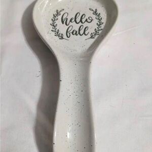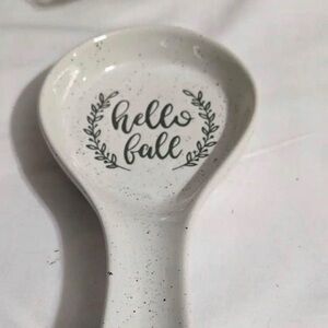 Ceramic Spoon Rest “Hello Fall” Beige With Green Speckles NWOT