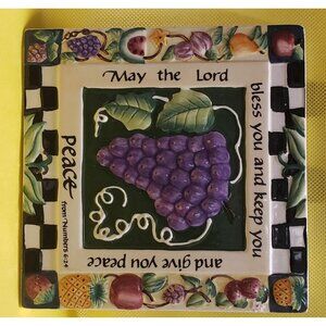 Ceramic Square Plaque With Grape & Fruit Design By Carla Grace For Carpentree