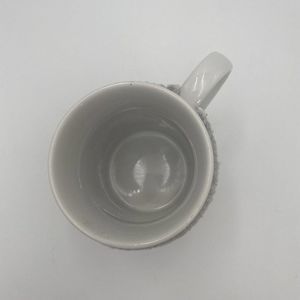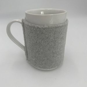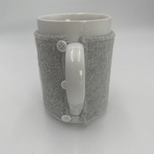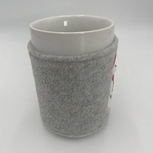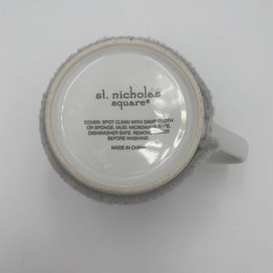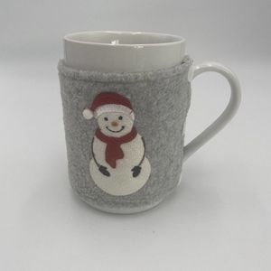 Ceramic St Nicholas Square Mug with Cozy Snowman Sweater 5" the Cozy is gray with white snowman Pre-owned.