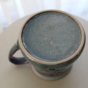 Holds 1 3/4 cups of your favorite beverage. Blue stoneware mug with cute dog design. This durable mug measures 4 1/4 inches in height. The 4 inch in diameter bottom adds stability to prevent spilling. The mug is new without tags.
