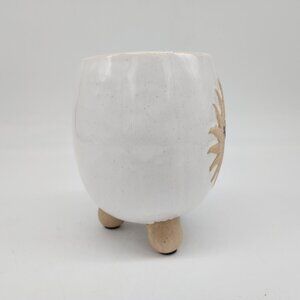 Ceramic Sun Face Planter Pot With Legs 6.25" High 4" Diameter