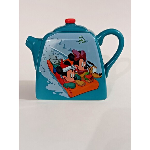 This ceramic teapot featuring Disney characters like Pluto, Mickey Mouse, and Minnie Mouse is a charming addition to any Disney fan's collection. Made in China and branded by Disney, this teapot brings a touch of whimsy and nostalgia to the kitchen or dining area. Perfect for tea enthusiasts and collectors alike, this unique piece showcases beloved Disney characters in a practical yet delightful way.