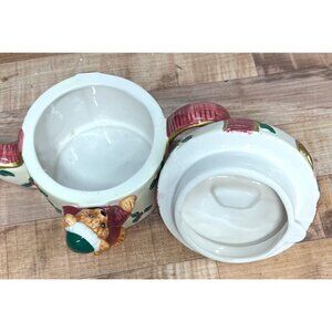 This charming ceramic teapot features an intricate teddy bear and Christmas gift design, making it a delightful addition to seasonal table settings. The teapot's festive colors and detailed craftsmanship offer a unique touch to holiday gatherings, serving both as a functional teapot and a decorative centerpiece during festive occasions.