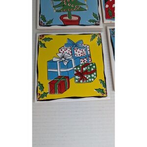 Ceramic Tiles Portugal Christmas Santa, Bells, Gifts Tree Cork Set Of 4