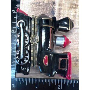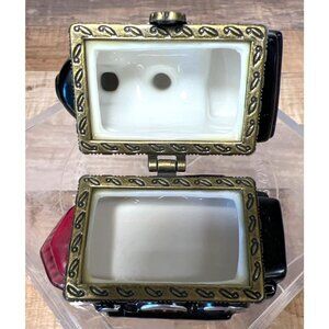 Ceramic Train Engine Trinket Box With Gold Accents & Hinged Lid