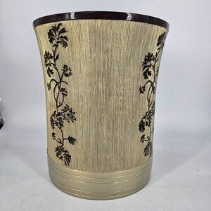 Ceramic Trash Garbage Can 10" Round Gold Brown Ribbed Floral Rustic Asian MCM