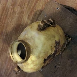 Vase with grape motif trimmed in bronze. Vase is approximately 13" tall.