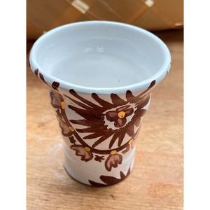 Ceramic Vase/Pen-Pencil Holder Brown Designs on White/Genuine 18k Gold Accents
