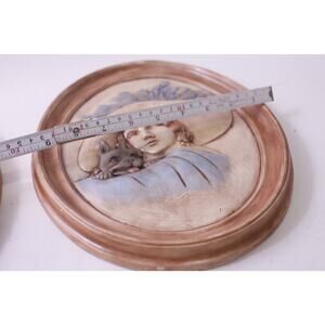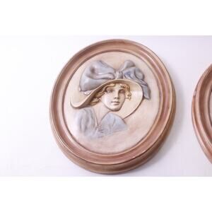 Ceramic, Victorian, Wall, Hangings, Oval Frame, Brown, Blue, Ladies Wall Hanging