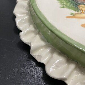 Ceramic Embroidery Hoop Design Wall Plaque Roosters Farmhouse Barnyard Decor...vintage probably made in ceramic class...does have a little damage with cracking on the back and chip in the ruffle...measures approx 9" in diameter....see all pictures