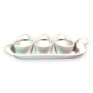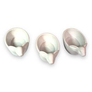 This Unbranded Ceramic White Bunny Tray & Dishes/Cups set is perfect for spring Easter decor, cottagecore, farmhouse, and French country style. The white tray measures 11.5in x 5in, and the bunny dishes are 4.5in x 2.5in each.