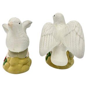 Ceramic White Doves Salt and Pepper Shakers On Floral Base 3 in Tall Vtg Decor