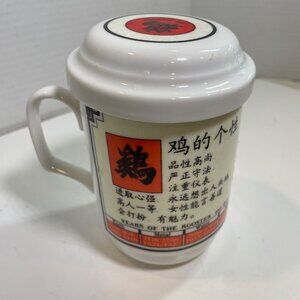 Ceramic Zodiac Rooster Tea Mug With Lid & Infuser