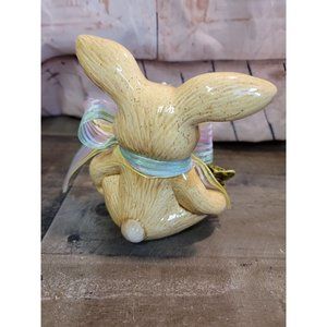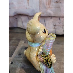 Ceramic brown easter bunny AS IS rabbit carrot bow decor figure