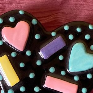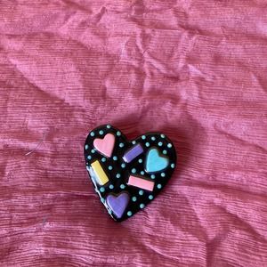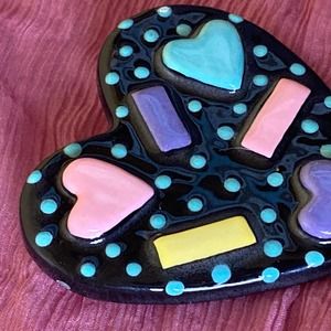 Ceramic heart brooch handmade raised design of hearts and polka dots Osborn