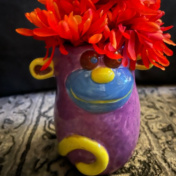 This is a hand painted Ceramic monkey vase. Super cute and can be a wonderful decor piece! (Flowers not included)