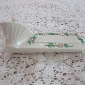 Ceramic place card holders with basket for flowers, candies, nuts in pink & purple flower design-set of 6-1970's- tea party - shower-luncheon
