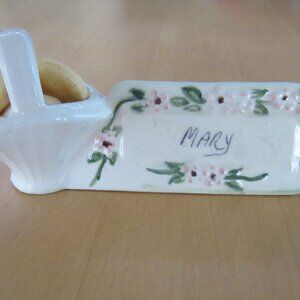 Ceramic placecard holders with basket for flowers,candies,nuts in pink & purple
