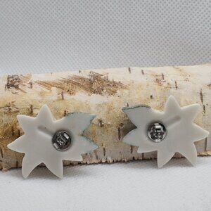 Ceramic porcelain poinsettia earrings white gold