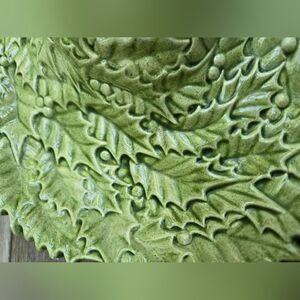 Elevate your holiday gatherings with this one of a kind whimsical serving bowl dish that doubles as a festive centerpiece. A charming ceramic tree, almost 8" tall, adorning the center of the green bowl, which seems to have been lovingly handmade and embossed with delicate holly leaves. Then there's the removable light-up ceramic tree is powered by 2 AA batteries, creating a warm and inviting glow that adds a magical touch to your holiday festivities. With its unique combination of functionality and enchantment, this serving bowl dish is the perfect centerpiece to make your holiday party truly unforgettable. Get ready to shine a spotlight on your hosting skills with this show-stopping holiday centerpiece.