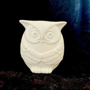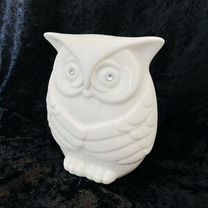 Ceramic Owl with a diamond eyes Slightly off white Approx 6 inches tall Approx 5 inches wide Tags: Woodland creatures