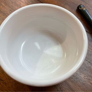 This very simple salt pot with spoon comes in super handy when in the middle of cooking. Easy to dispense and apportion as you season your dishes, it does have a faint mark around the inside. No cracks or chips. Let me know if you have any questions!