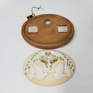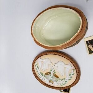 Ceramic Trinket Box Basket Brown Anniversary Doves Rings Removable Disk