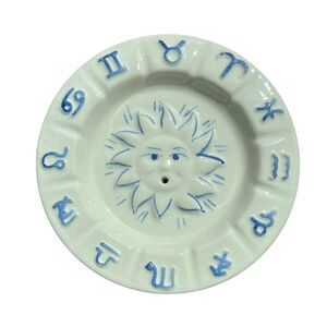 ‎Ceramic Zodiac Sun White and Blue Incense Holder