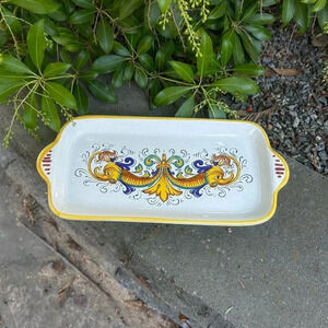 Ceramica Nova Deruta Vintage Ceramic Raffaelesco Design Handled Tray