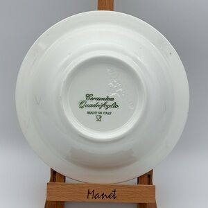 Made in Italy, this set of 4 soup bowls from Ceramica Quadrifoglio is in the Blue Fruits and Leaves pattern. These were originally sold at Crate & Barrel. These bowls are approximately 8 1/4 inches in diameter and 1 7/8 inches tall. These bowls are in excellent preowned condition with no chips, cracks, crazing or repairs.