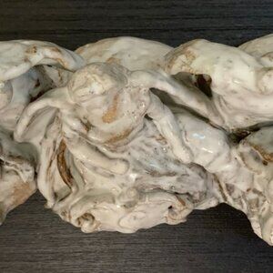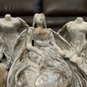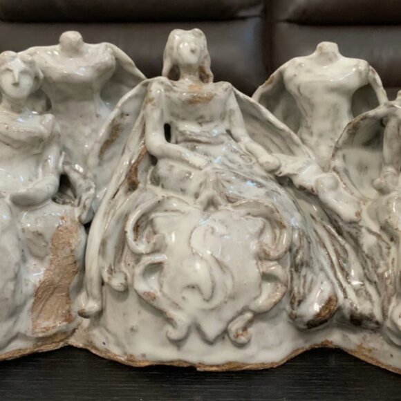 This artwork captures feminine figures in angelic form all to showcase the power of femininity. It was made using clay, which was fired and then later glazed. The artwork is able to act as a decoration piece suitable for any home. The “S” in front is able to represent anything that the person wants to associate with it. This sculpture makes a good aesthetic piece that is able to fit in well with its surrounding decorations.