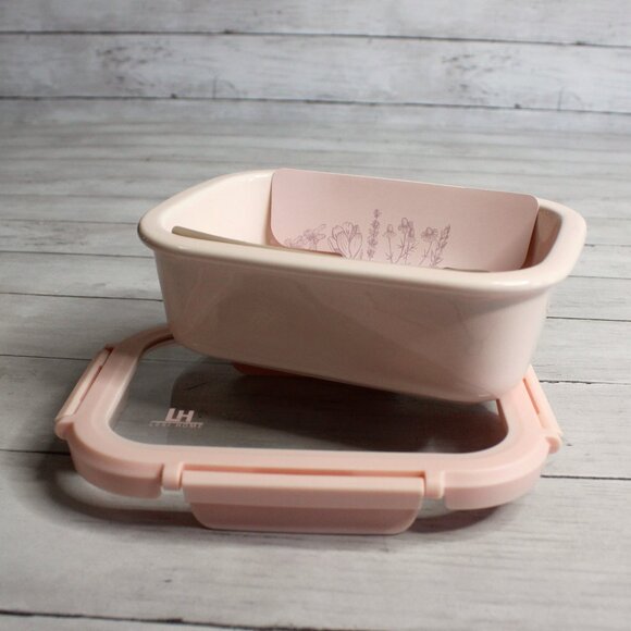 Ceramique Porcelain Glass Storage Container with Lid Pink 23 oz