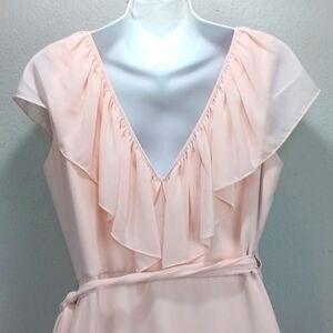 Ceremony by Joanna August Lola Blush Pink Ruffle Chiffon Wrap maxi Dress sz L