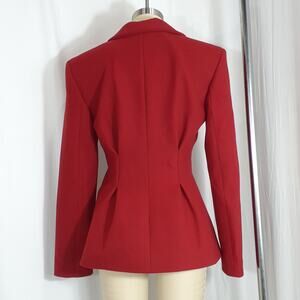 Ceren Ocak Blazer Jacket Size S: single front button closure, padded shoulders, midweight fabric with a cinched back waist.