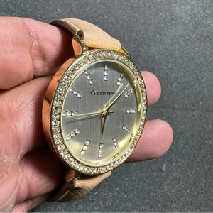 Cerentino Ladies Quartz Watch Gold Tone Case Rhine Stone Bezel Working LST1702SH shows signs of wear such as light scratches on case and crystal see pictures for reference