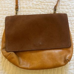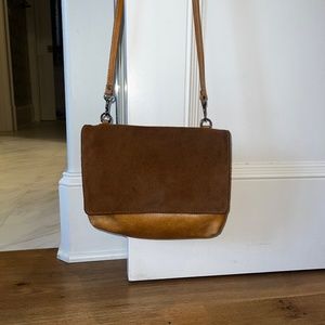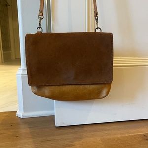tan leathe/suede crossbody bag demin inside