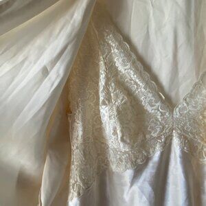 Cerie vintage beige satin robe nighty set nightgown Plus wms 2x/3x