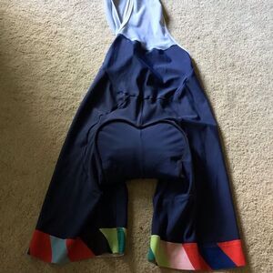 Experience comfort and style with these men's blue cycling bib shorts. Perfect for long rides, these shorts offer a sleek design and vibrant accents.