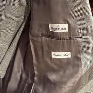 Made in Italy, this Vintage gorgeous Cerruti double breasted suit features the Prince of Wales check pattern. Also known as Glen Plaid in black and white. Made of wool & cashmere. Perfect for formal occasions and professional settings. Pristine condition.