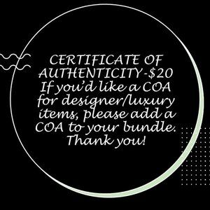 If you are purchasing and designer or luxury item and would like a COA, then please add a COA to your bundle. Thank you!