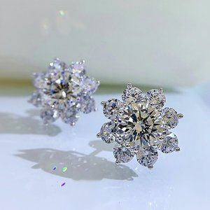 Certified 1 ct. t.w. Moissanite Diamond Sunflower Stud Earrings NEW