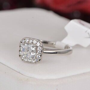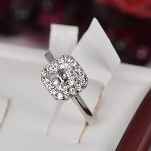 Certified 1.0 ct Halo Ascher Cut Moissanite Engagement Ring 925 Sterling