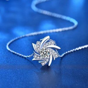 Certified 1/2ct. t.w. Diamond Windmill Necklace 18k White Gold over Italy Silver