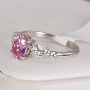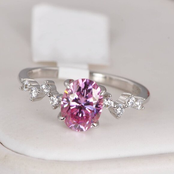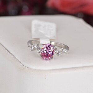 Certified 1.5 ct Pink Oval Cut Moissanite Engagement Ring 925 Sterling