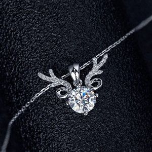 Certified 1ct. t.w. Diamond Elk Necklace 18k White Gold over Italy Silver