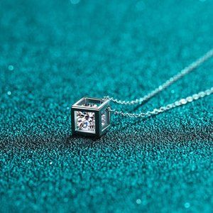 Certified 1ct. t.w. Diamond Moissanite Cube Necklace NEW