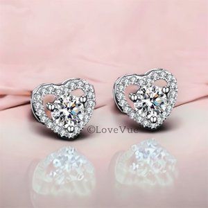 Certified 1ct. t.w. Diamond Moissanite Heart Frame Halo Stud Earrings