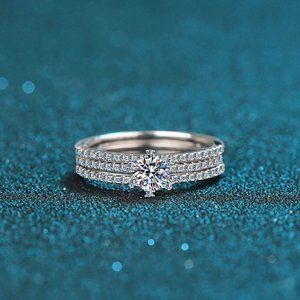 Certified 1ct. t.w. Moissanite Diamond Engagement Ring Set NEW