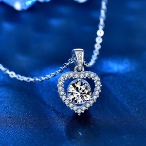 Certified 1ct. t.w. Moissanite Diamond Heart Halo Pendant Necklace NEW