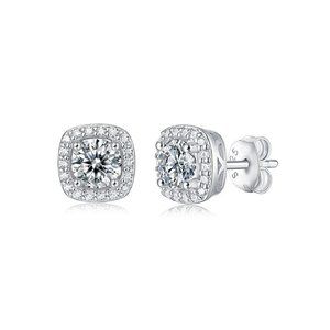 Certified 1ct. t.w. Moissanite Diamond Round Halo Stud Earrings NEW